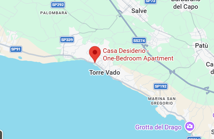 L'alloggio si trova a Torre vado una delle più famose località marittime della Puglia e a ridosso della splendida Marina di Pescoluse, famosa per le sue spiagge bianche e il mare cristallino. Casa Desiderio rappresenta la scelta perfetta per chi desidera trascorrere una vacanza indimenticabile, in una posizione privilegiata e a pochi passi dal mare.